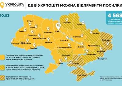 На 10 березня працює 4568 відділень Укрпошти, додалася послуга безкоштовної переадресації відправлень. Окрім цього на маршрути, де це безпечно, виїжджають пересувні відділення.