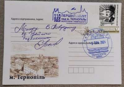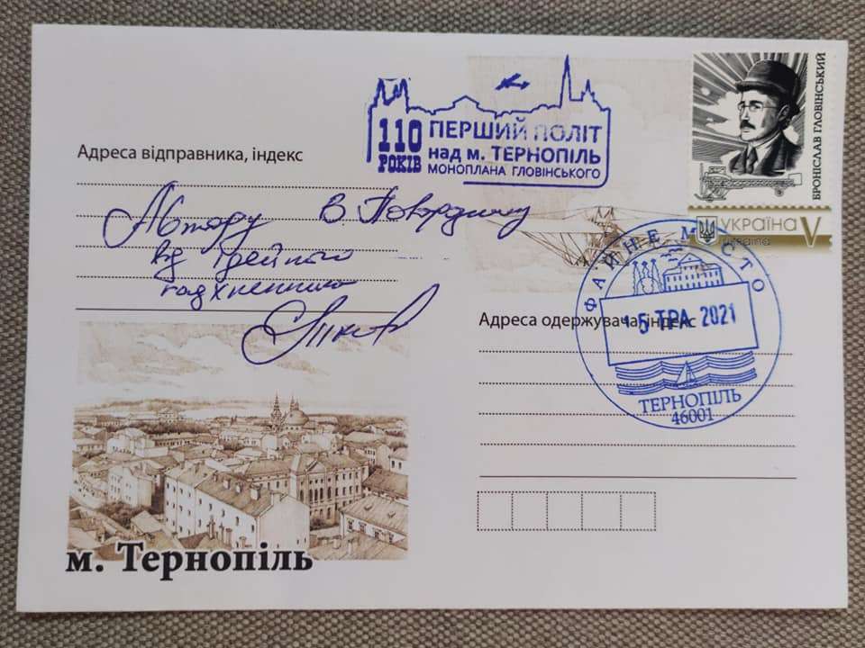 У Тернополі відбулося спецпогашення пам’ятної марки, присвяченої 110-ій річниці першого польоту над містом на літаку власної конструкції тернополянина Броніслава Гловінського.