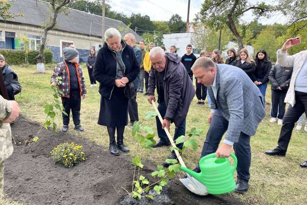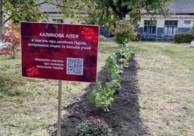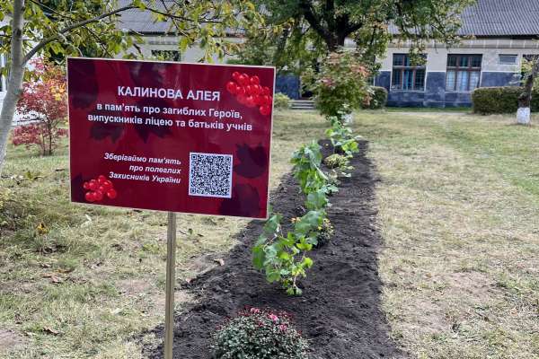 На території навчального закладу батьки загиблих захисників України висадили п’ять кущів калини. Кожен з них символізує одного полеглого на війні воїна.