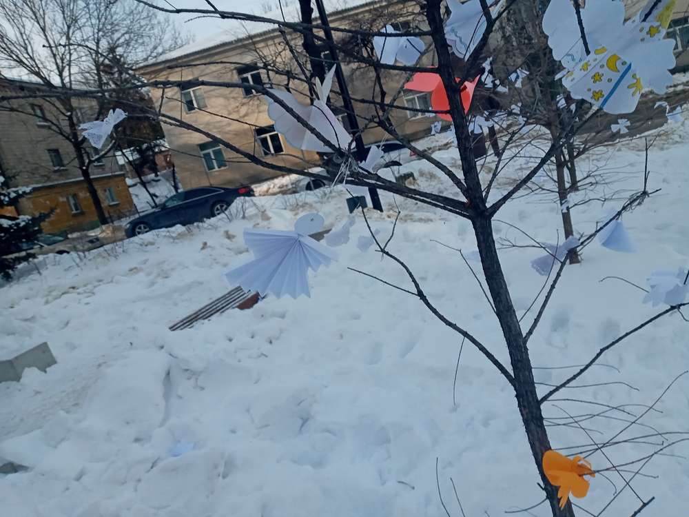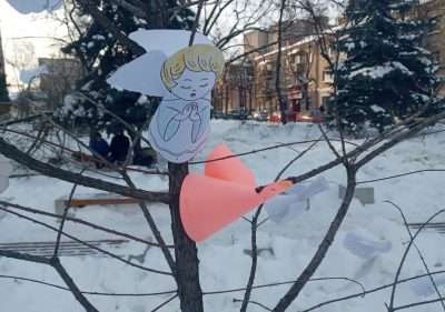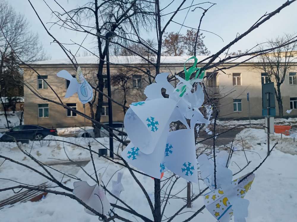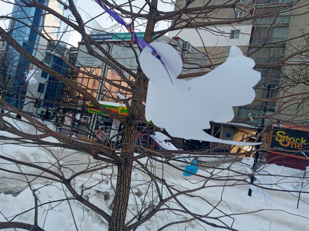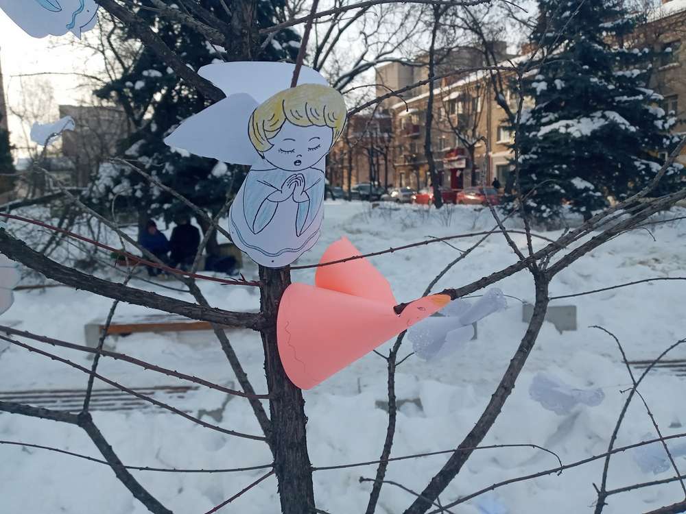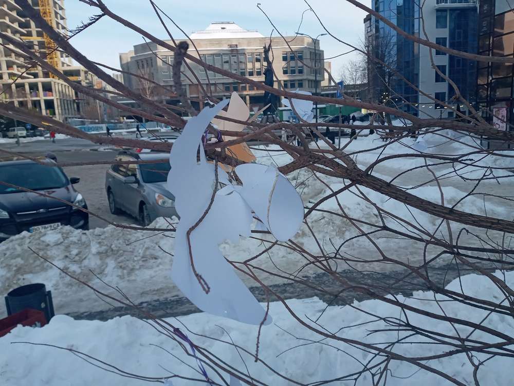 Небайдужі тернополяни прикрасили білосніжними паперовими ангелами дерева у волонтерському сквері ім.Віктора Гурняка в місті Тернопіль