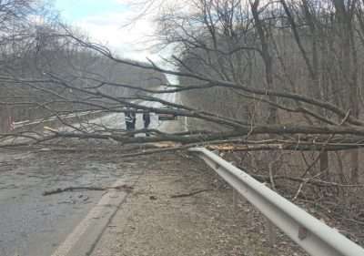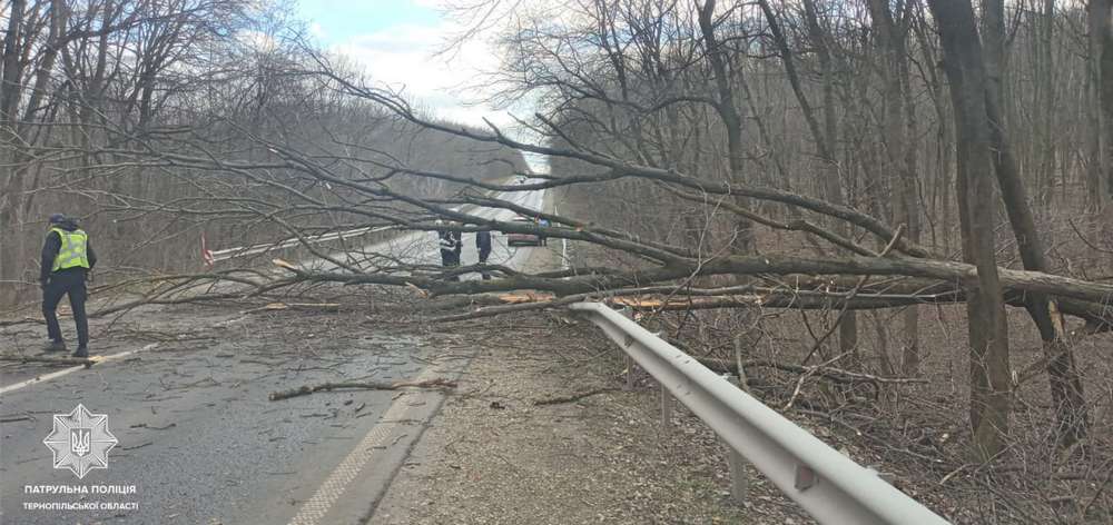 У Тернопільській області на автодорозі М-19 Доманове — Тереблече, неподалік міста Копичинці, через сильні пориви вітру на проїжджу частину впало декілька дерев.
