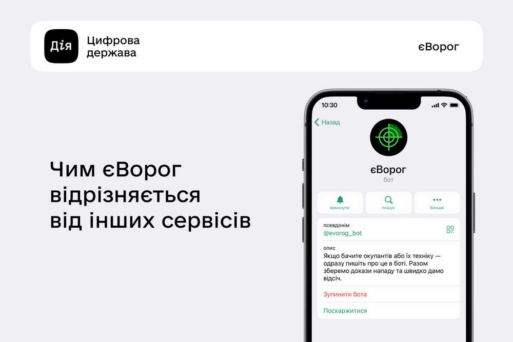 Переходьте в чатбот із головного екрана Дії або за посиланням https://t.me/evorog_bot. Розкажіть про єВорог друзям та знайомим.