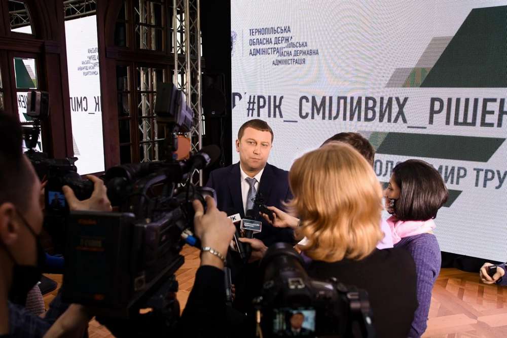 Володимир Труш очолив Тернопільщину 19 березня. Це був непростий час для України і, зокрема, нашої області. Адже саме зареєстрували перші випадки захворювання на коронавірус та була зафіксована перша смерть від цієї недуги. Тож новопризначеному посадовцю у перші дні довелося не лише формувати свою команду і входити у курс справ, а негайно вирішувати проблеми, пов’язані із спалахом пандемії коронавірусу, готувати медзаклади, здати про закупівлю засобів захисту та забезпечення киснем. Володимир Труш зізнається, цей рік був сповнений викликів і випробувань. «Рік – швидких та сміливих рішень. Я точно знаю, що ми прожили його з честю та гідністю. Я можу спокійно дивитися людям в очі. І сказати, що ми відпрацювали його на всі 100%», – зазначив посадовець.