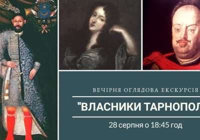 28 серпня о 18:45 год. усі бажаючі зможуть дізнатися про знаменитих і не дуже власників Тернополя від 1540 до 1843 років. Чи особи власників вплинули на розвиток міста, а може Тарнополь вплинув на них? Хто знає, який населений пункт був би на місці Тернополя, якби не Ян Амор Тарновський, який своїм коштом збудував замок та нове місто. Чи піднявся б Тарнополь з руїни польсько-турецької війни, якби не допомогла нова власниця – польська королева. Зрештою, чому тарнополяни зібрали величезну суму і відкупилися від останнього власника? Саме під час мандрівки ви отримаєте відповіді на ці та інші запитання. Окрім цього на вас чекає багато цікавих оповідок з історії рідного міста.