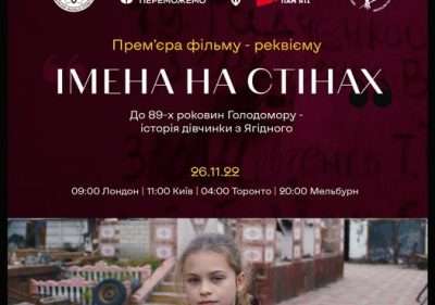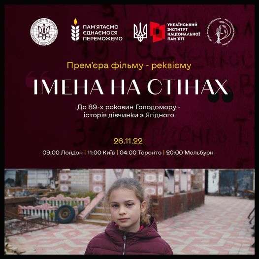 До роковин Голодомору команда Ukrainian World Congress – Свiтовий Конґрес Українців за підтримки Український інститут національної пам’яті створила документальний мініфільм про історію 11-річної Валерії Прокопенко та її односельчан з Ягідного на Чернігівщині. В лютому–березні цього року вони пережили жахіття російської окупації.