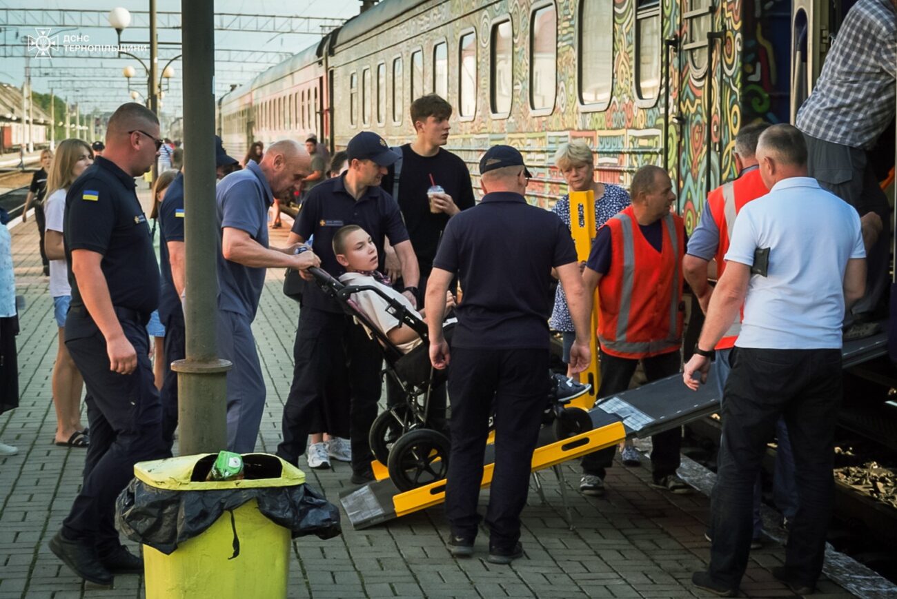 «Потягом на запрошення благодійної організації «Місія. Віфезда» для реабілітації та оздоровлення приїхали 16 дітей з інвалідністю, у супроводі дорослих. На пероні гостей зустріли рятувальники та психологи ДСНС, які надали всебічну підтримку. Співробітники Служби порятунку допомогли перенести речі та дістатися до автобуса, що відвезе прибулих до Реабілітаційного центру», – поділилися у ГУ ДСНС.