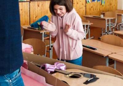На Тернопільщині волонтери віддячили школярці Олі Дацко із села Кам’янки Підволочиської громади, яка обрізала волосся, щоб продати його і заробити гроші для ЗСУ. Вони подарували їй гітару, яку дівчина хотіла. Музичний інструмент придбали за допомогою благочинців. Також Олі передав свій подарунок гурт “Океан Ельзи“. Про це у мережі Facebook написав співорганізатор “Volunteers Team Pidvolochysk” Сергій Гіс.