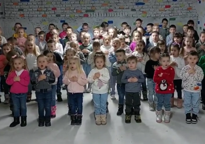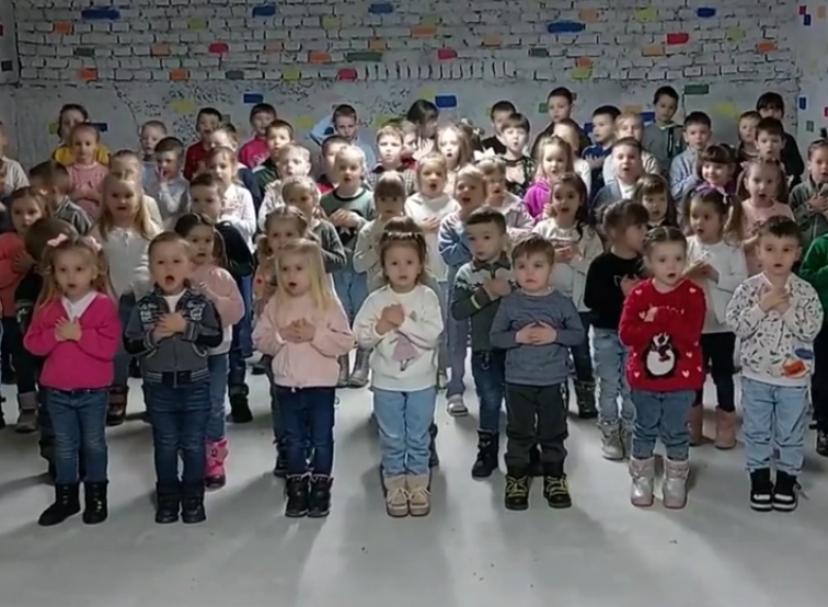 На відео дітлахи виконують зворушливу пісню “Дитячими долонями” з укриття дитячого садочку.