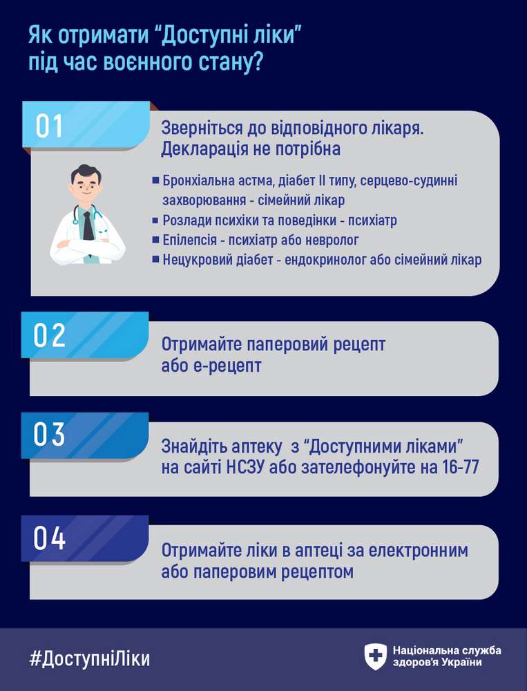 Щоб отримати препарати за програмою “Доступні ліки” потрібно звернутися до відповідного лікаря, в залежності від напряму: