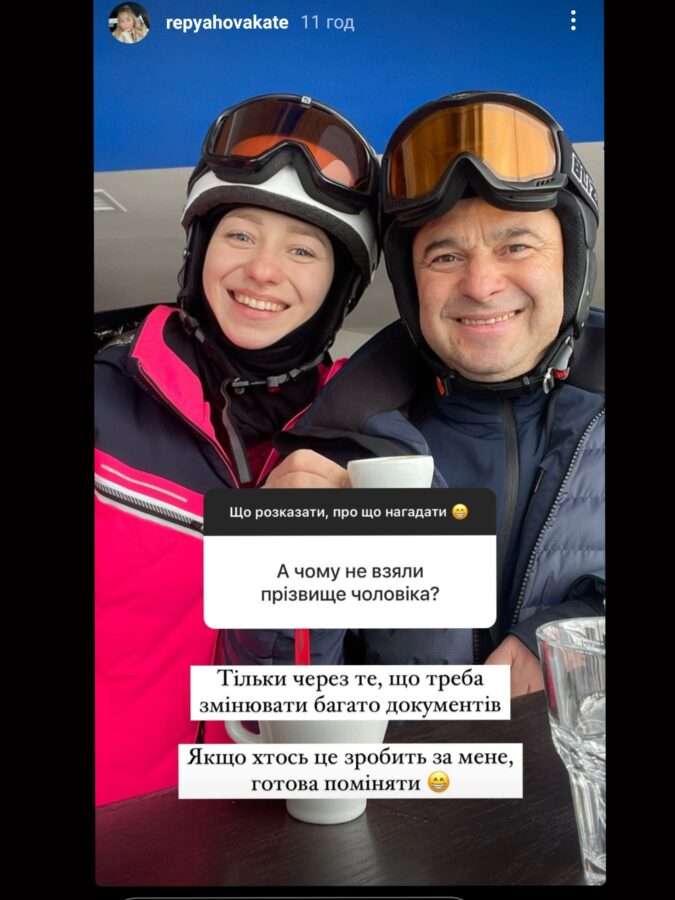 Серед інших питань були і ті, які, вірогідно, цікавлять багатьох вже дуже давно: яке прізвище у дівчини після заміжжя та чого вона не змінить його на чоловікове Павлік. Катерина відповіла, що залишилась на своєму прізвищі. А не захотіла змінювати своє дівоче Репяхова лише по одній причині — через те, що необхідно змінювати багато документів.