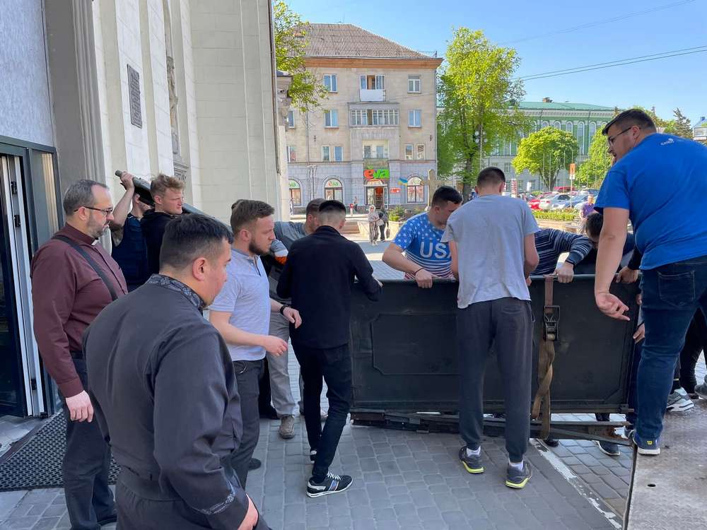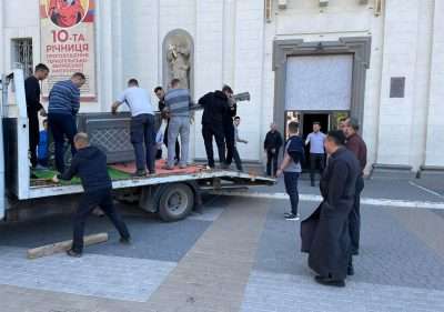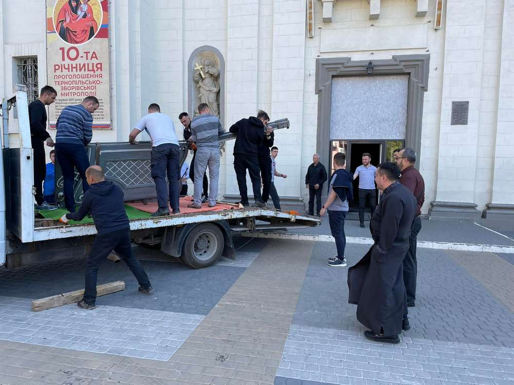 Сьогодні пошкоджені двері з Архикатедрального собору відправили на реставрацію. Про це повідомили працівники храму на сторінці у Фейсбуці.