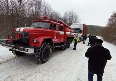 У Тернопільському районі, на територіальній автомобільній дорозі Галич – Підгайці – Сатанів, у сніговий полон потрапили дві вантажні фури Renault та DAF C.