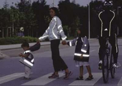 -потурбуватися про наявність світловідбивних елементів на одязі дітей. Розташовуйте їх на рівні голови, корпусу і рук дитини — через менший зріст діти менш помітні на дорогах.
