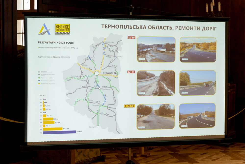 -Тернопільщина сьогодні посідає друге місце в Україні по ремонту доріг. Знаковими об’єктами є: М-30, Гаївська розв’язка, об’їзна Тернополя та Струсівський міст. Окрім доріг, ми також відремонтували рекордну кількість мостів – 28, – зазначив голова ОДА Володимир Труш.
