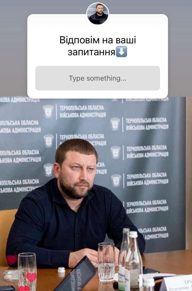 Голова Тернопільської ОВА Володимир Труш особисто веде свою сторінку в інстаграмі та відповідає на запитання своїх підписників.