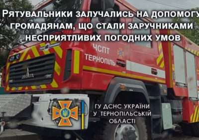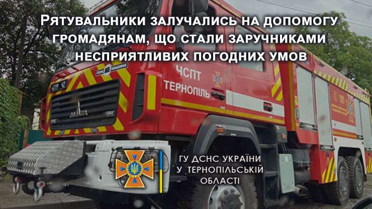 О 02:12 в м. Тернопіль на вул. Збаразькій, поблизу кільця, черговим караулом ДСНС здійснено буксирування із підтопленої дощовими водами дороги автомобіля «Opel Zafira», який не міг самостійно продовжувати рух.