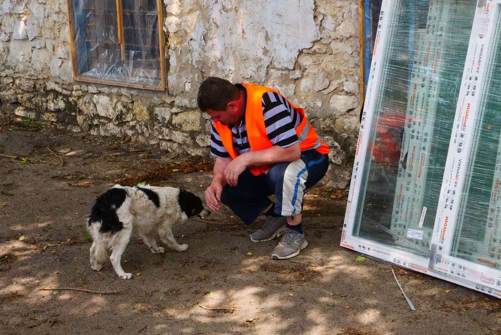 Якби ви бачили цього собаку, його симпатичну мордочку, вусика, хвостик, і ці очі, які бачили всі звірства окупації. Він довгий час не йшов на контакт, боявся і тікав в кущі, але згодом звик, відчув напевне що цих людей можна не боятися.