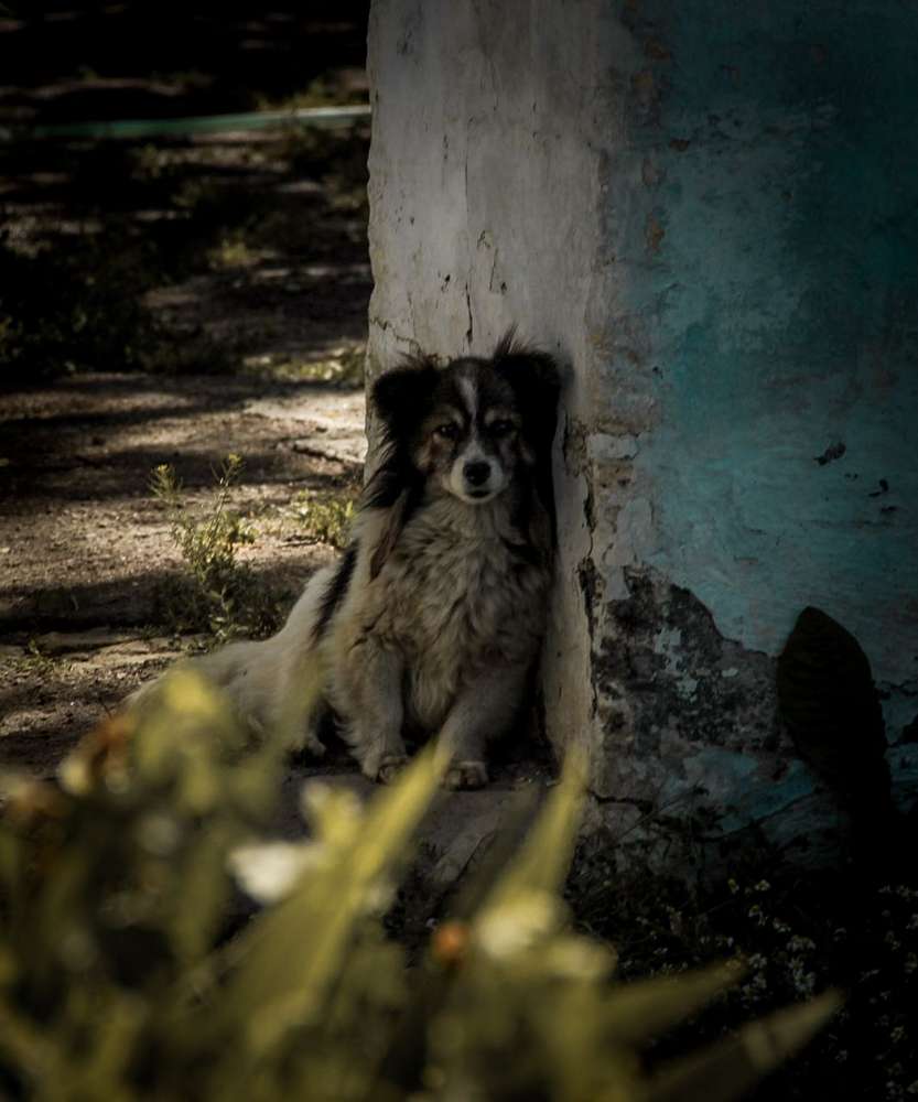 Маленькі, сумні оченята, вушка похилені, лапки підібгані під себе…В його очах так багато смутку, занепокоєння і страху. Він покинутий, самотній, голодний. Його будинку давно немає, а подвір’я на якому він проживав «прикрашають» нерозірвані російські гранати.