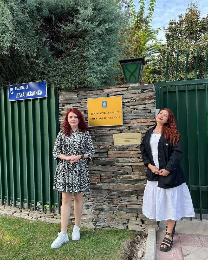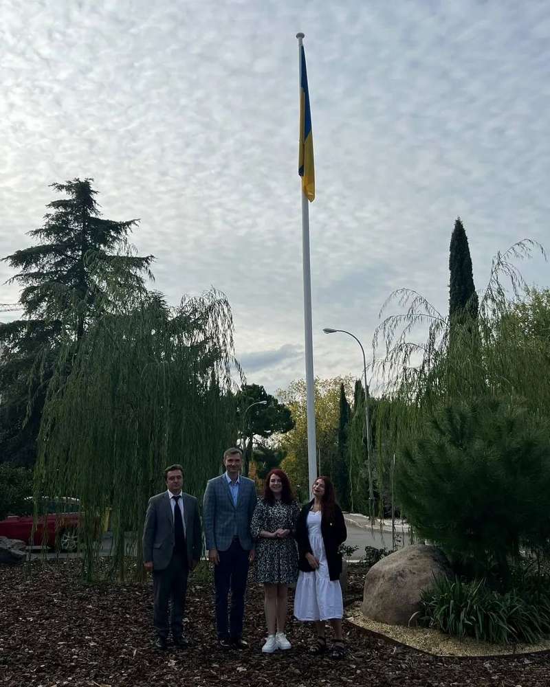 Окрім цього, на площі Лесі Українки, що знаходиться біля Посольства, наші представниці зробили пам’ятні фото коло знакового прапора України. Флагшток заввишки 5 метрів з синьо-жовтим стягом було встановлено на реконструйованій площі за рішенням мера Мадрида Хосе Луїса Мартінеса Альмейди до 250 днів від початку героїчного протистояння України російському вторгненню.