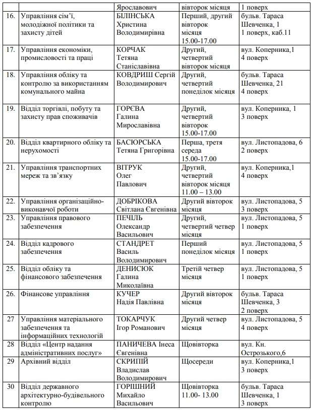 Тернопільська міська рада оновила графік прийому громадян керівниками структурних підрозділів мерії.