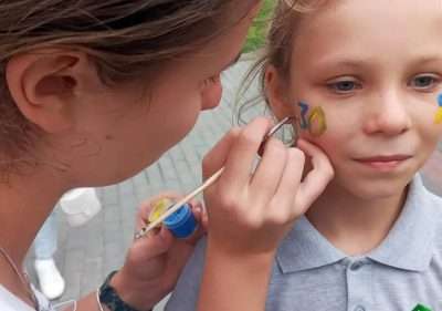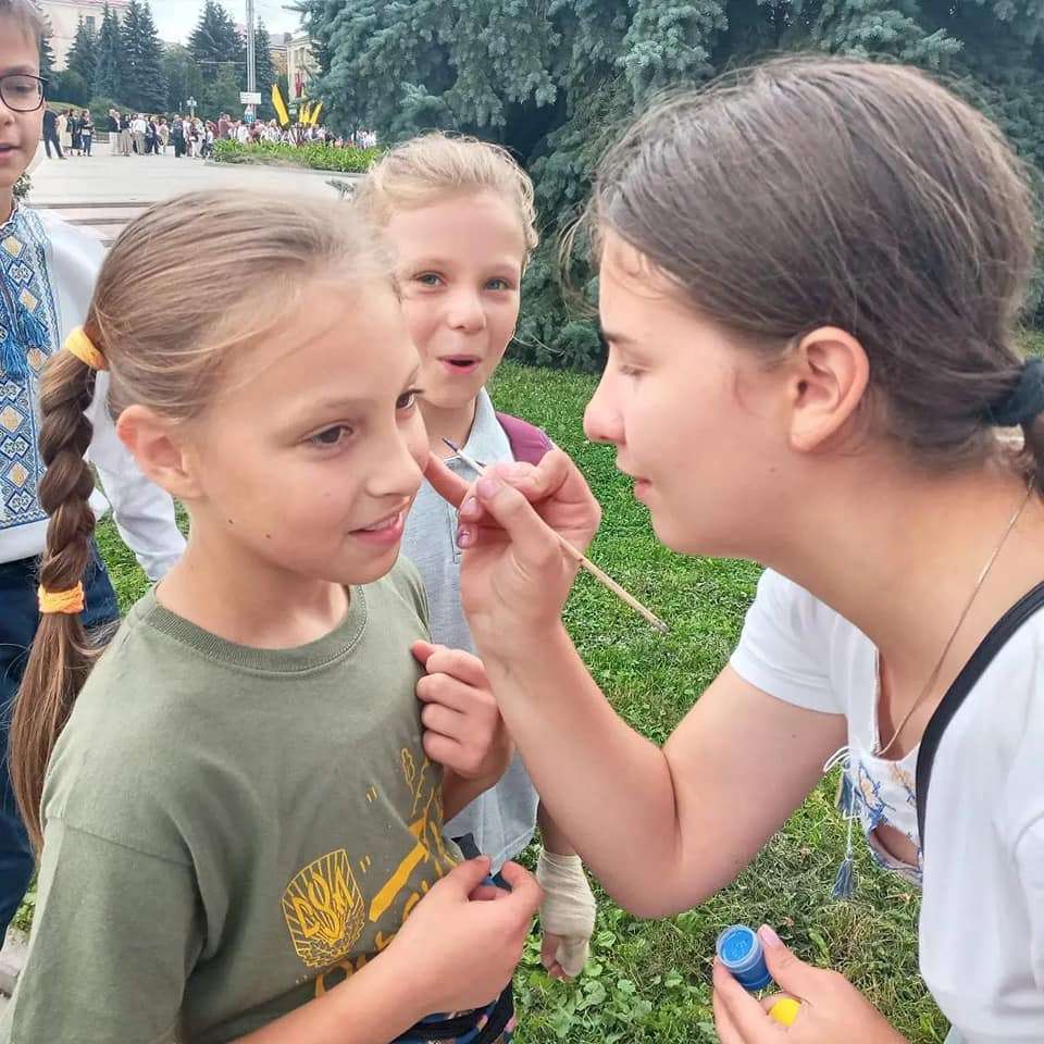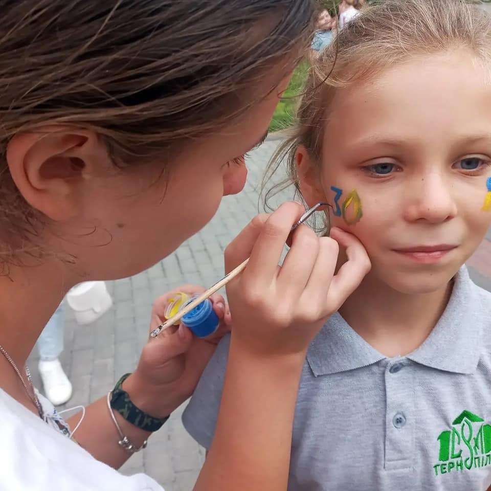 Під час акції «Розмалюймо серця в синьо-жовті кольори» члени Тернопільського осередку Спілки Української Молоді в Україні наносили на обличчя і руки перехожих кольорові прапорці, тризуби, квіти.