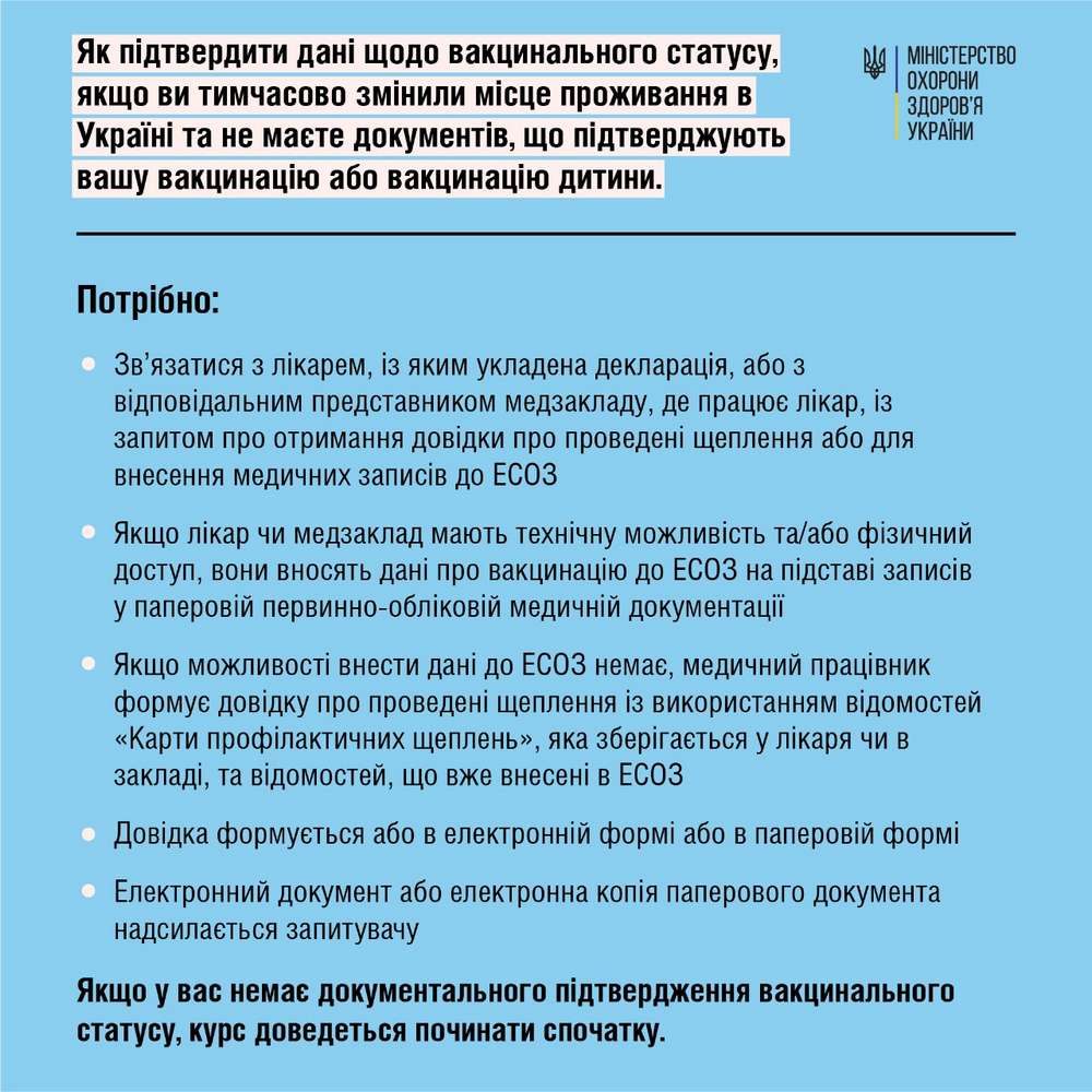 Через війну багато людей вимушені змінювати місце проживання. Дехто не має на новому місці медичної документації, відтак не може підтвердити вакцинальний статус дітей і свій власний.