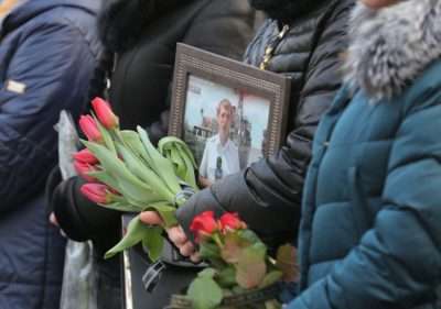 5 лютого Дмитро Лабуткін знімав матеріал про захоплений бійцями 128-ї гірсько-піхотної бригади трофейний російський танк Т-72 під Дебальцевим.[