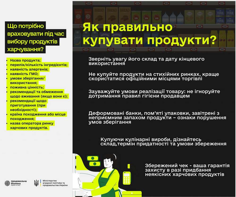 Тому в цей день хочемо нагадати, як правильно купувати продукти та на що в першу чергу потрібно звертати увагу при їх виборі. Маємо турбуватися про безпеку харчових продуктів, які ми споживаємо. Адже це – основа нашого здоров’я та довголіття!