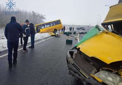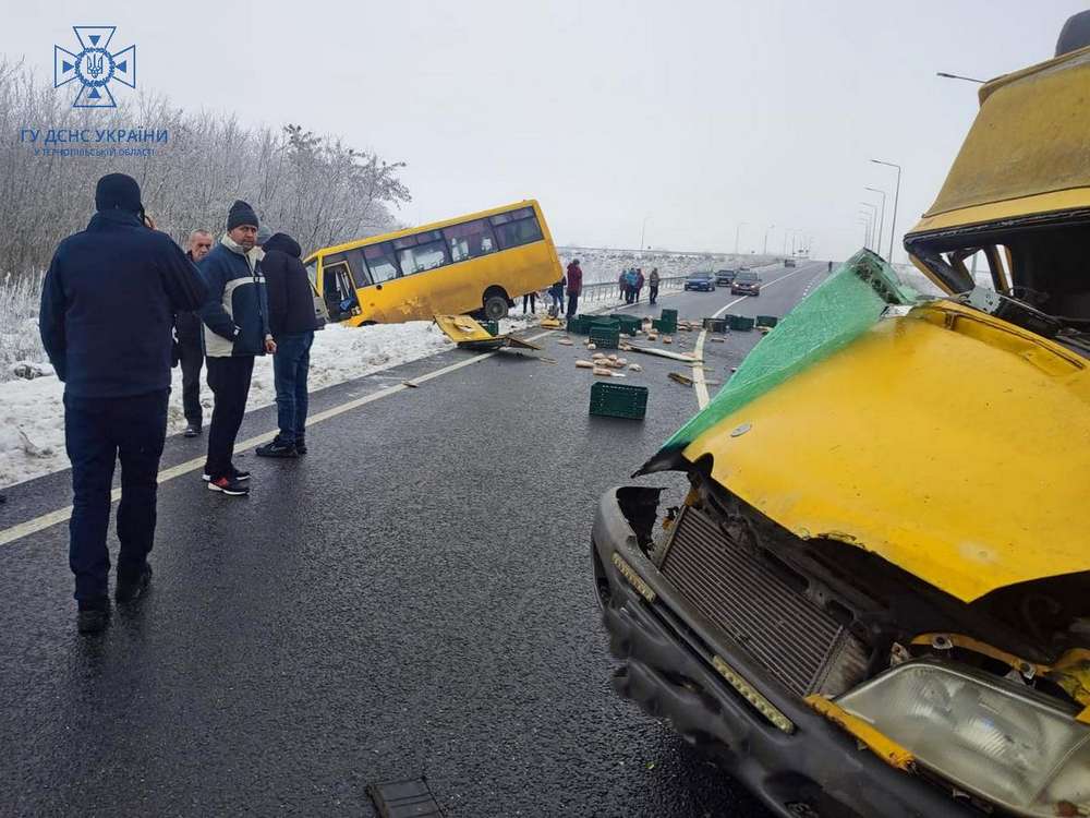 На момент ДТП в автобусі перебувало орієнтовно 20 чоловік. Внаслідок ДТП травмований водій автомобіля «Mercedes-Benz», а також, попередньо, 5 пасажирів отримали незначні травми.