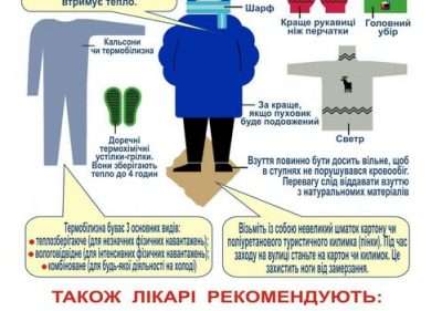 І найголовніше: стежте за прогнозом погоди і не виходьте з дому без нагальної потреби, якщо температура повітря нижча -10, уникайте подорожей на далекі відстані, дбайте, щоб ваш мобільний телефон був завжди зарядженим.