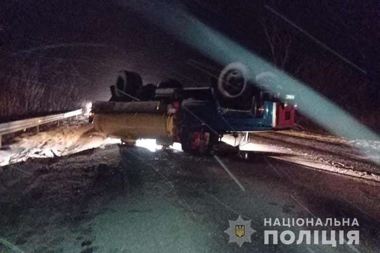Як розповідають у поліції, легкового транспортного засобу виїхав на смугу зустрічного руху де врізався у молоковоз марки ГАЗ. У результаті удару вантажівка перекинулася, а її водій з травмами потрапив до лікарні.
