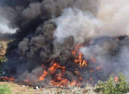 Як повідомили в обласному управлінні ДСНС, пожежа виникла на стихійному сміттєзвалищі.