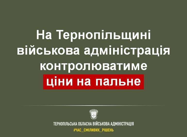 На Тернопільщині створили моніторингову групу, до якої увійшли представники військової обладміністрації, Нацполіція, Держпродспоживслужбиа  та Держлікслужби, представники органів місцевого самоврядування. Вони будуть забезпечувати контроль за встановленням роздрібних цін на низку товарів, зокрема, і на паливо.