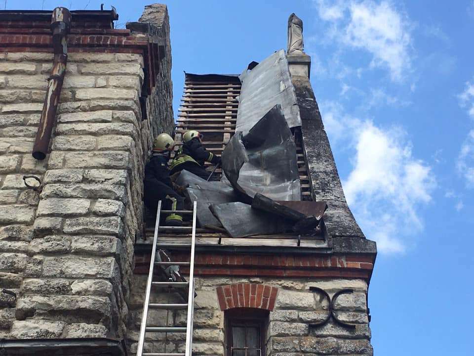 Силами рятувального відділення було проведено зняття фрагмента металевого покриття, який висів на покрівлі костелу.