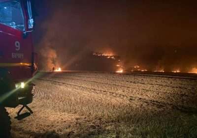По приїзду до місця події черговим караулом виявлено декілька осередків горіння післяжнивних залишків загальною площею близько двох гектарів.