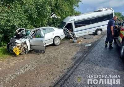 За попередніми даними, водій автомобіля марки «Skoda Octavia» не впорався з керуванням на повороті та виїхав на смугу зустрічного руху, де зіткнувся з мікроавтобусом «Mercedes-Benz».