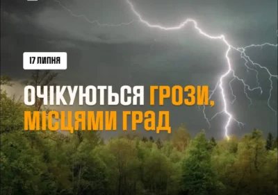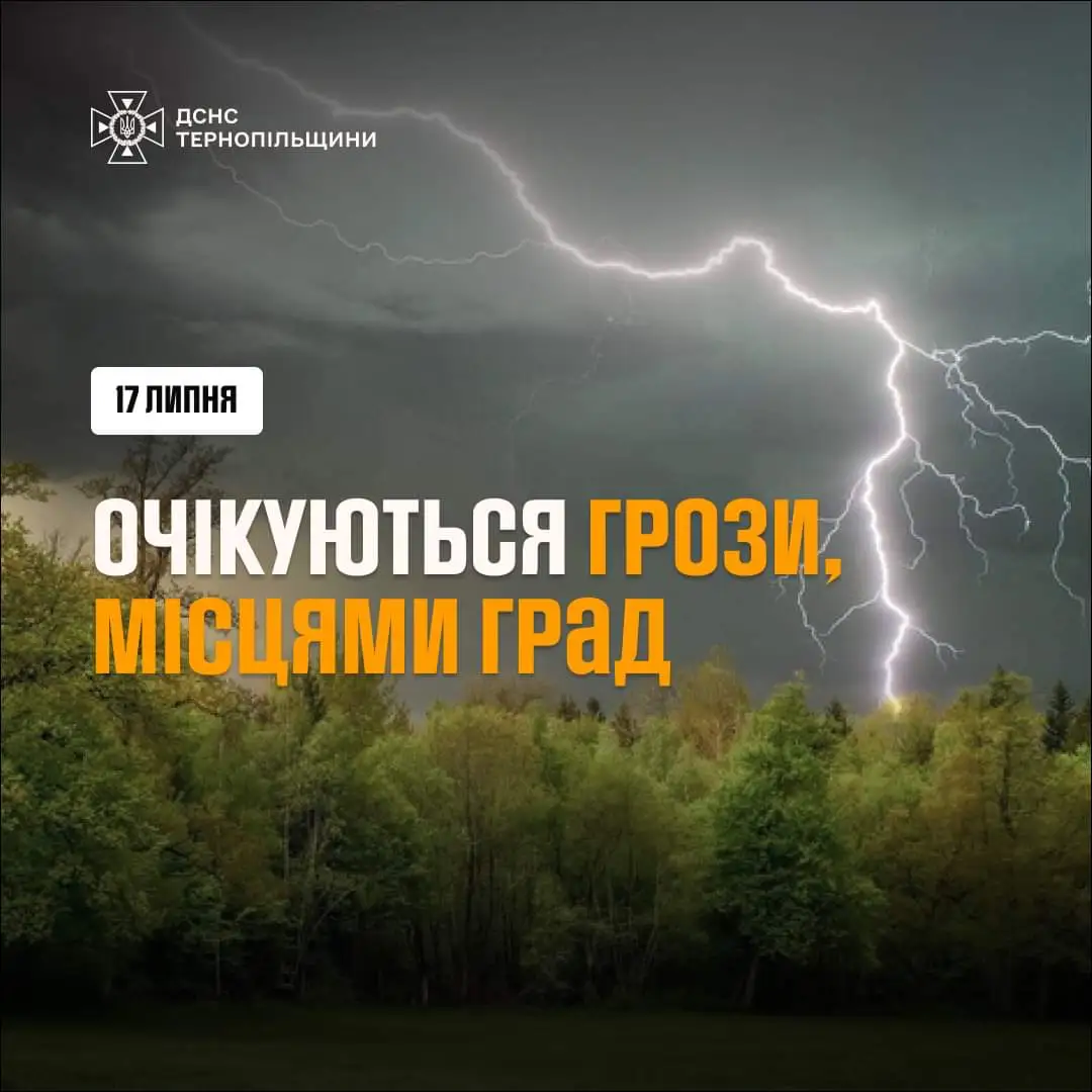 За даними Тернопільського обласного центру з гідрометеорології, 17 липня на території Тернопільської області очікуються грози.