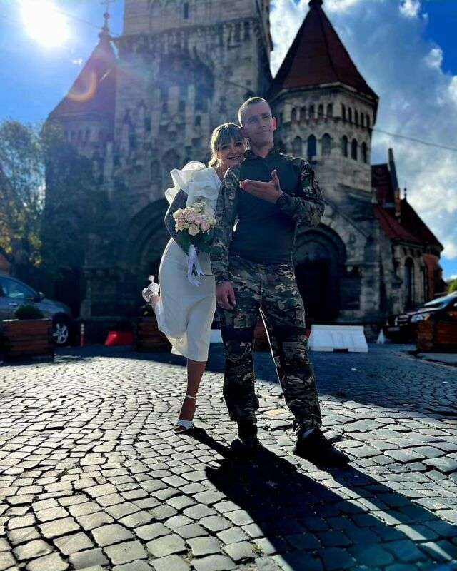 — Цей сонячний вересневий день зігріватиме наші серця! Ми давно планували розписатись, але все відкладали на потім, — розповідає Олександра. — Євген наполіг, щоб нарешті узаконили стосунки. У країні триває страшна війна, не знаємо, що буде завтра… В моїй душі переплелися радість і тривога. Щаслива, що ми з коханим офіційно стали подружжям, що вирішили спільно іти по житті. А водночас не дають спокою хвилювання… Подібне, мабуть, переживає кожна дружина військовослужбовця.