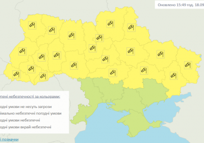 На Тернопільщині оголосили жовтий рівень небезпеки