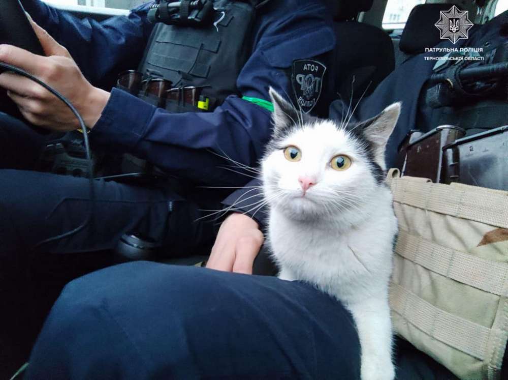 Патрульні підібрали кота та знайшли йому нову домівку.
