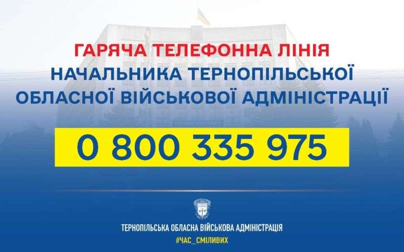 За номером 0 800 335 975 ви можете отримати необхідну інформацію або повідомити про проблему. Про це повідомляє сайт Тернопільської ОВА.