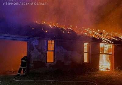 “16 жовтня о 23:40 у місті Кременець на вулиці Березова виникла пожежа недіючої господарської будівлі. Внаслідок пожежі знищено покриття будівлі на площі 300 м кв., пошкоджено перекриття на площі 300 м кв”, – повідомляють рятувальники.