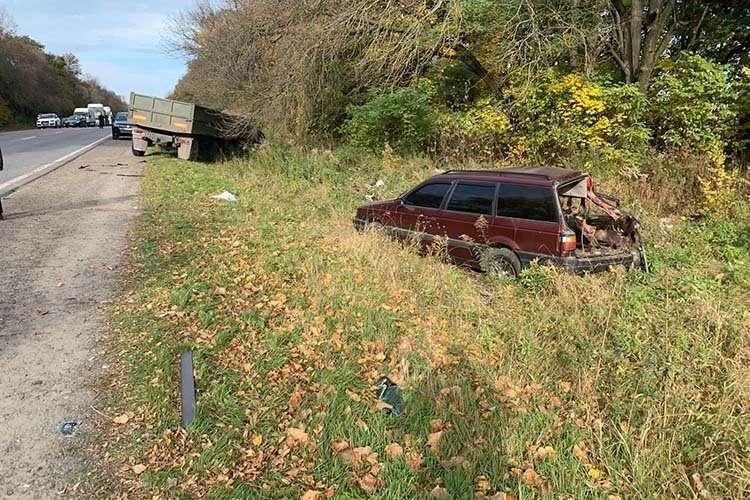 В результаті, Volkswagen врізався в Камаз 5320. 45-річний пасажир іномарки загинув на місці події. Ще одного пасажира доправили до лікарні.