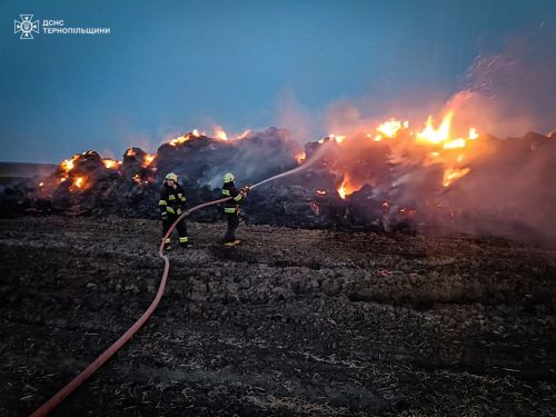 Ще одна пожежа сталася у селі Нове Село Тернопільського району, де на полі загорілися тюки соломи. Площа займання сягнула 400 м², вогнем знищено орієнтовно 85 тонн соломи.