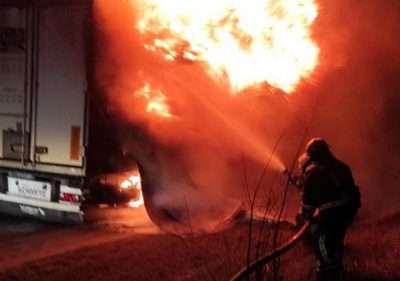 Цієї ночі у м. Кременець на вул. Лятуринської виникла пожежа причепа до вантажного автомобіля «MAN».