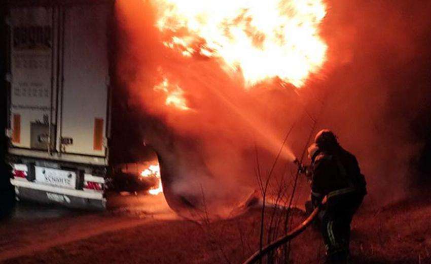 На Тернопільщині загорілася вантажівка