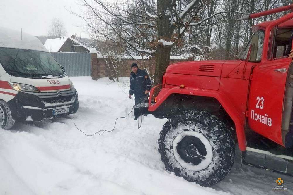 У с. Ценів Тернопільського (Козівського) району здійснено буксирування зі снігового замету рейсового автобуса «Тернопіль – Вибудів» з пасажирами, а в селі с. Солоне Чортківського (Заліщицького) району та у м.Почаїв – карет екстреної медичної допомоги;