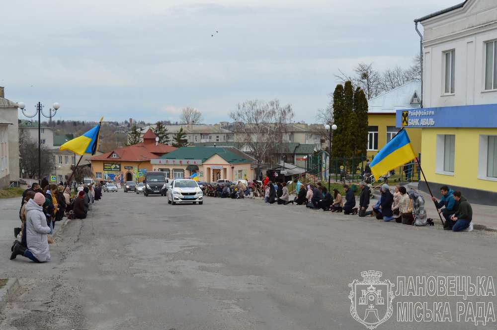 Поминальну панахиду відправили на центральній площі міста, де сотні жителів громади, ставши на коліна, віддали шану жертовності та національному подвигу 22-річного ланівчанина.
