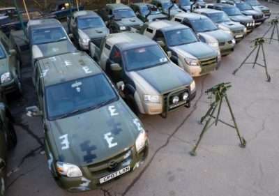 Усі автівки укомплектовані спеціалізованими кріпленнями, тепловізійними прицілами, турелями, планшетами, зарядними пристроями, прожекторами та іншим необхідним для оборони обладнанням.