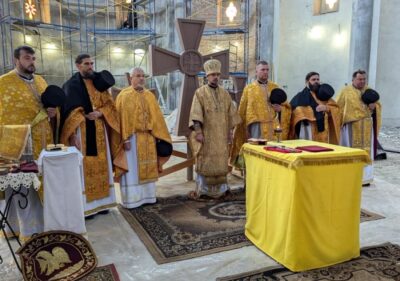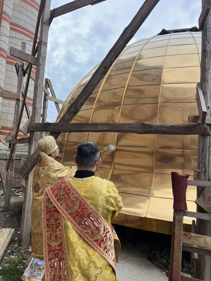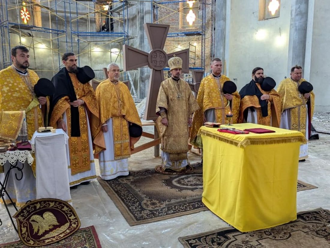 Після відправи архієрей разом із духовенством відслужив молебень за успішне завершення будівництва собору та акафіст святим рівноапостольним Костянтину та Єлені.